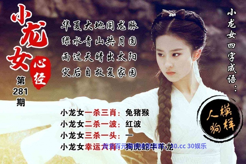 281期:小龙女心经【开:羊47】 解:华夏大地同龙脉,绿水青山共月圆,雨过天晴出太阳,灾后自救复家园 解肖:狗虎蛇牛羊龙 波色:蓝绿波 |